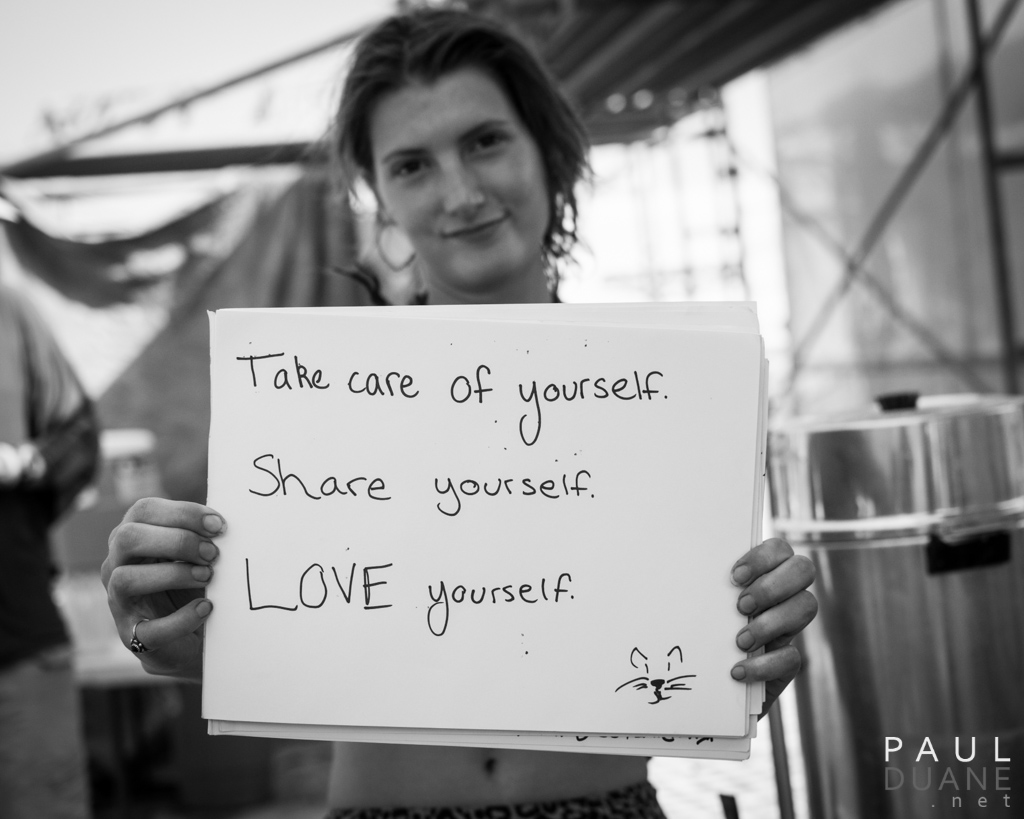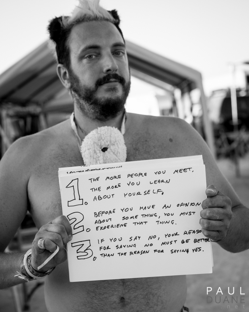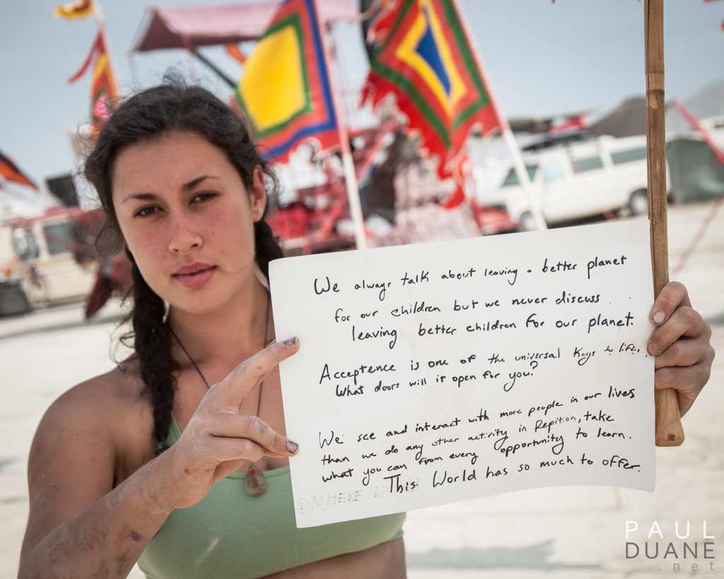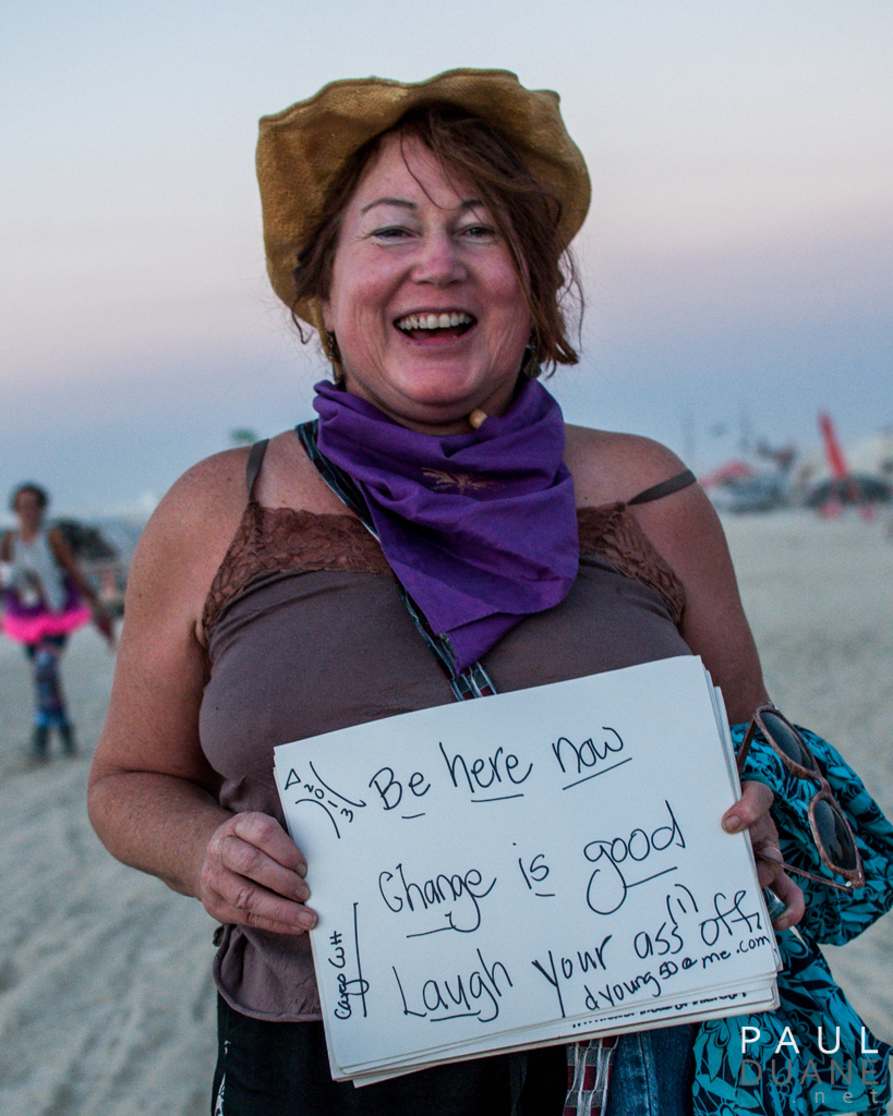 Paul, thank you for bringing yourself and your project to the playa and then sharing your photos with the world via the internet. I send you dusty hugs to offset the snarky and/or negatively myopic comments that some people have left in this comments section. My 7 time time burner mind and eyes did not recoil at your photos. In them I saw neither ageism nor preferences for sparkle ponies and playa hotties. As for the critique that the authors of the signs in your photos were expressing sentiments that could only be expressed in the “western world” I politely call bullsh*t on that. 😉