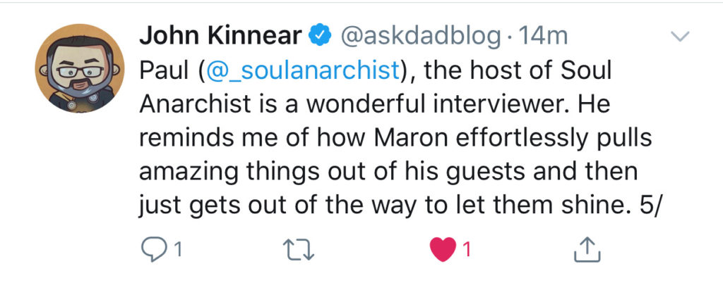 It frightens me to think that we live in a world where this guy is common. In other news, I got a really nice compliment from a new listener, someone I picked gave a Lyft ride to the other night: