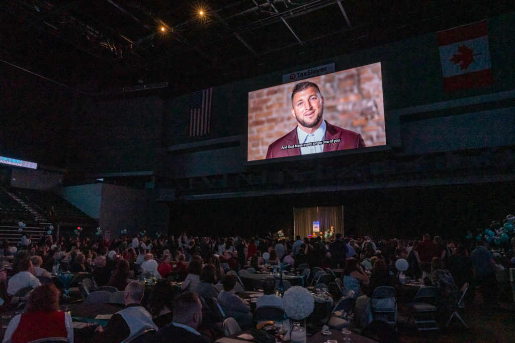 Toward the end of the night, Tim Tebow appeared on a giant screen and shared a message with the crowd, expressing love and wishes for an amazing night for all – including an announcement that everyone there would be crowned king and queen of the prom.