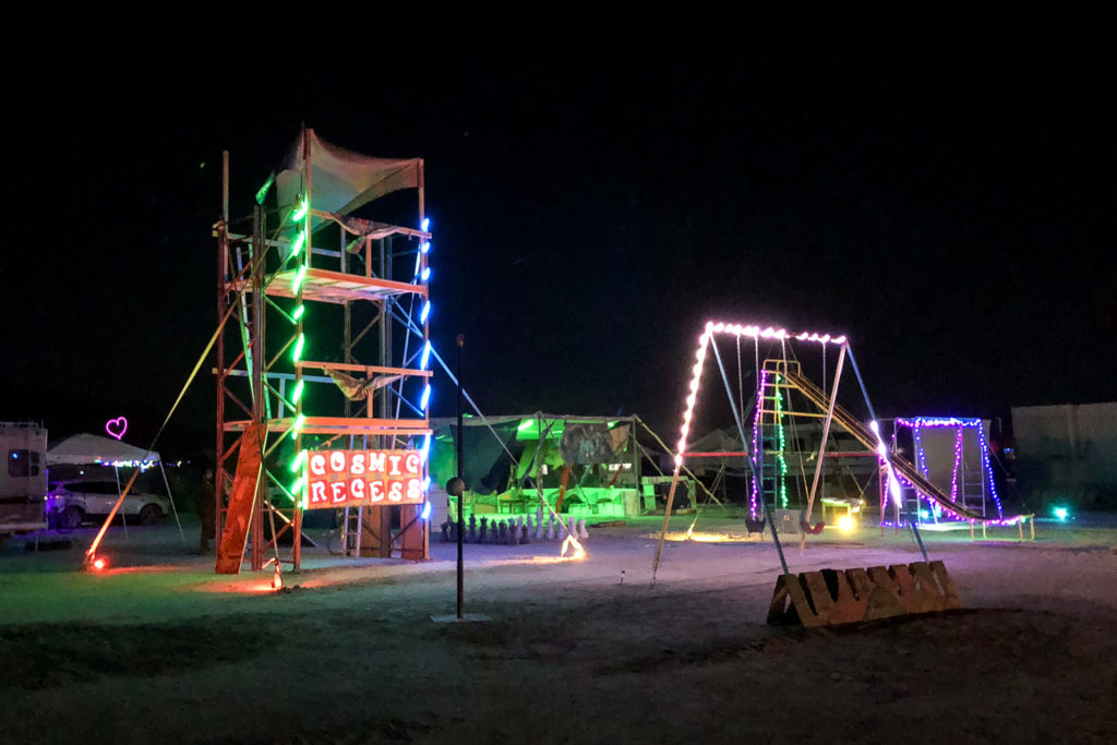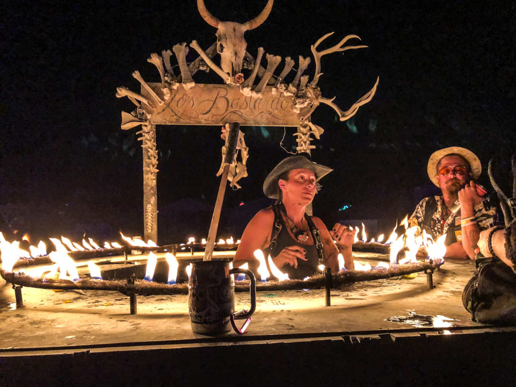 As the evening wore on, I went out on a very brief trip on the Frog Prince with Steve at the helm. Zafod had Bon Jovi playing while we slowly weaved through art installations and art cars, all of which blasted various flavors of EDM. I think about HST’s love of the weirdo, I think about Larry Harvey being the ultimate weirdo. Though this city is supposedly a city of weirdos, the fact is, a great many of them work very hard to fit in. There’s something truly weird and rebellious in Zafod’s music choice. I’m into it. “I’m a cowboy… on a steel horse I ride…. I’m wanted… dead or alive”, blasting over a small speaker on this frog prince art car.