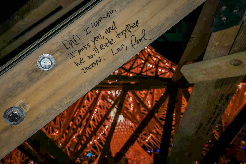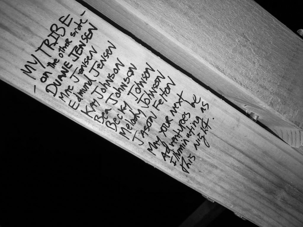 I wrote a small tribute and listed the names of all of my tribe who have gone before me, an on the other side of the beam, I wrote a small message to my Dad, though if I’m to be honest, I did not feel him there with me. If anything, it was an act just for me, a small act of sentimentality – a nod to the time and place, and setting forth the next major manifestation of my life: