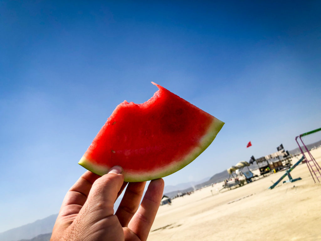 I start the day with a bit of orange juice and quickly refill with a margarita. Our camp bar is overflowing with tequila and mixers., even after our margarita party. Hell, we are at burning man. When else is it socially acceptable to begin the day with a nice big cold margarita?