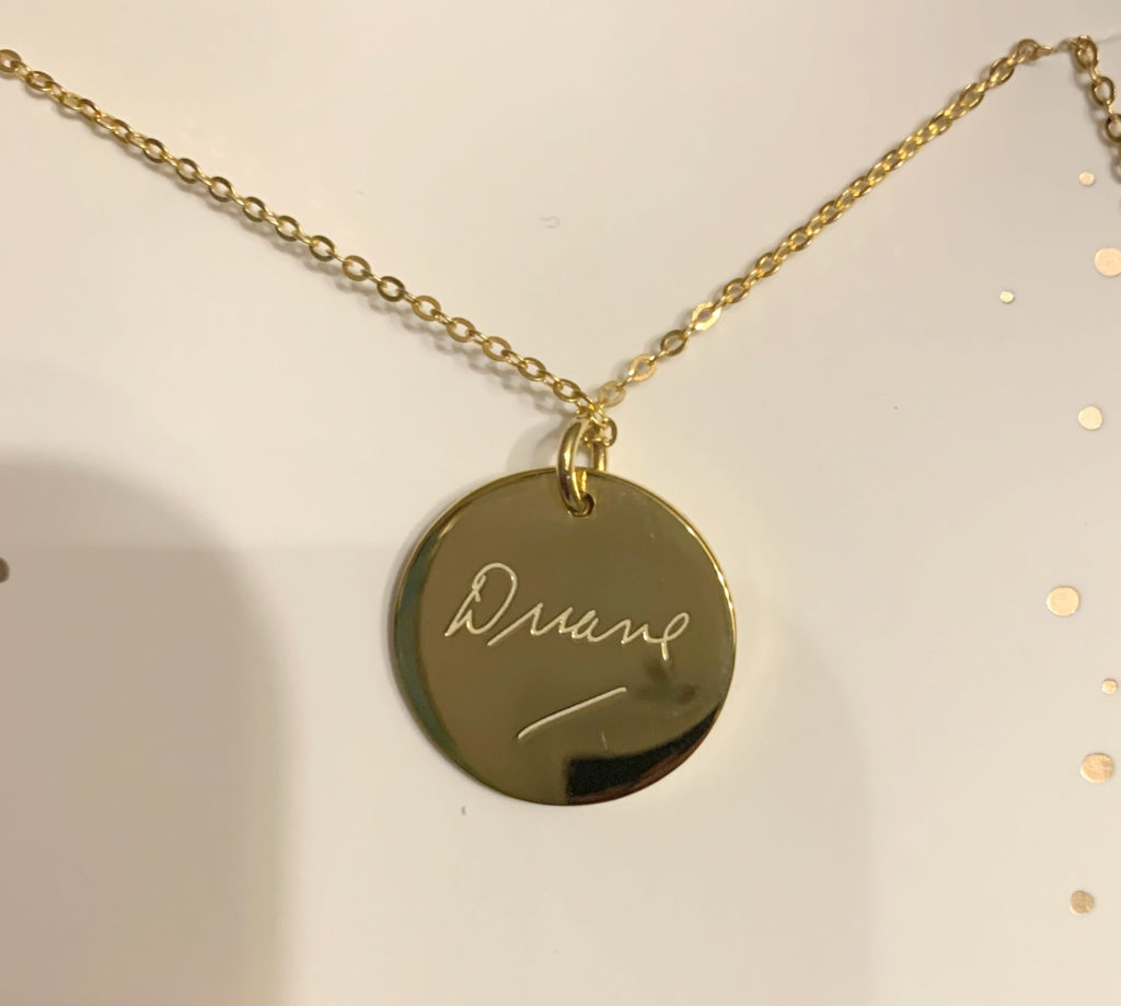 My daughter, Makinley, had an idea for a gift for my mother. She found a company that will take samples of a person’s handwriting and turn it into a locket. My mother loves lockets that have some aspect of my Dad in them.