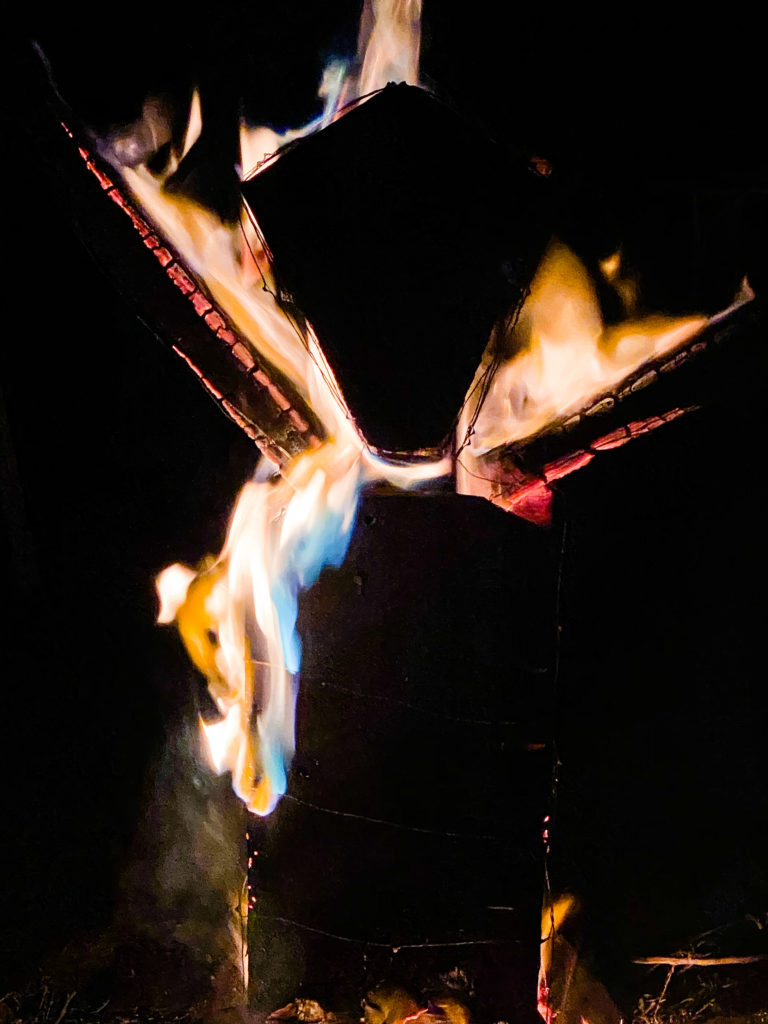 I am beyond thrilled… this is a topic for another day. Let’s get back to this burning wooden man in the back yard –