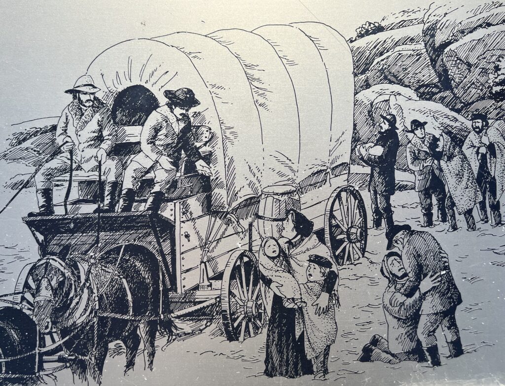 Prior to the trail head, there is a visitor’s center with art depicting the various sufferings of the pioneers, most notably, burying their dead in the frozen ground.