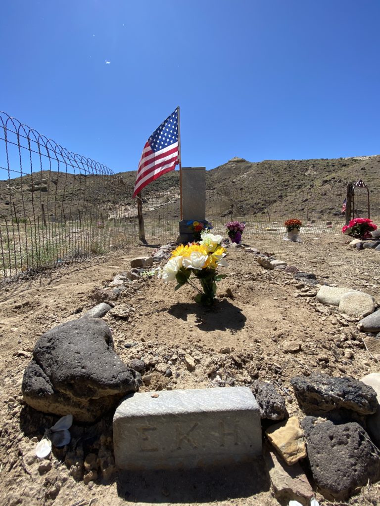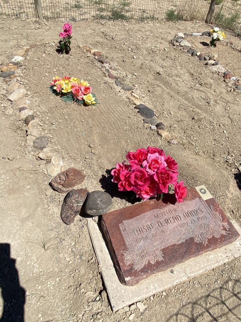 Someone had been to visit the graves in the past 24 – 48 hours, as there were some potted flowers that were almost all dried out and beginning to wilt in the dry desert conditions. I remembered that I had packed an extra water bottle, “just in case”. That case just became clear. I watered their flowers, sat between them to each some lunch, and had a heart to heart conversation with my great great grandparents, seeking the wisdom of these hardy forebearers.