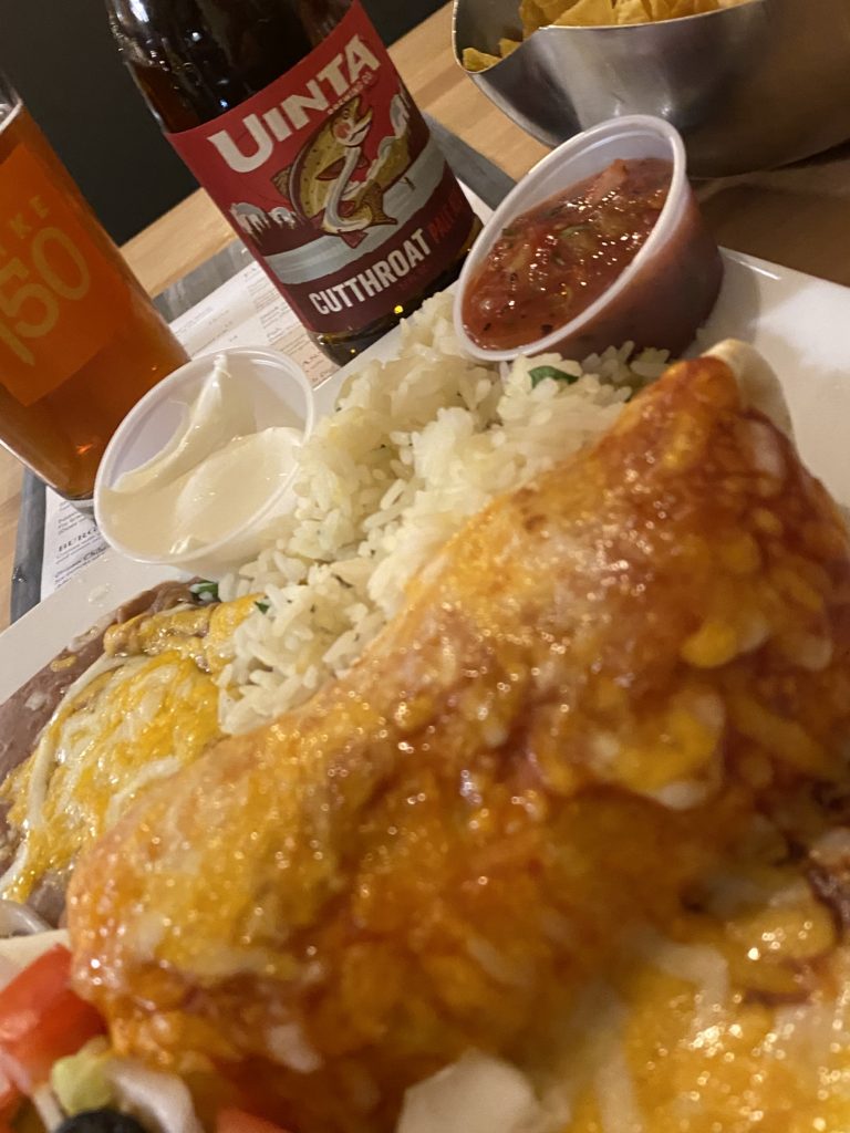 I checked into my motel and then rode up and down the main road of Green River looking for a place to eat that wasn’t Subway or Arby’s. I settled on a cafe attached to a neighboring hotel, ordered a chicken burrito and my favorite beer. This was the first meal I’d had all day, and it felt kingly. It’s funny what legitimate hunger can do to one’s sense of appreciation.