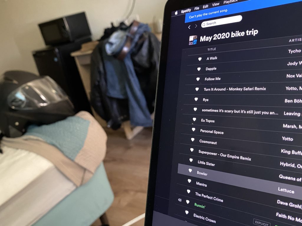 After sleeping better than one should in such a motel this cheap, I dined on a gas station breakfast and began reviewing the details of today’s ride. Of utmost importance – the soundtrack!