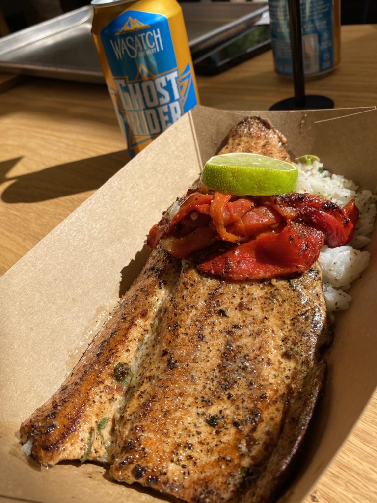 We stopped for lunch at the Burr Trail Grill for lunch. I had a filet of trout over with rice with pine nuts. The fish was perfect in every regard and paired wonderfully with the citrus notes of the Wasatch Ghost Rider IPA.