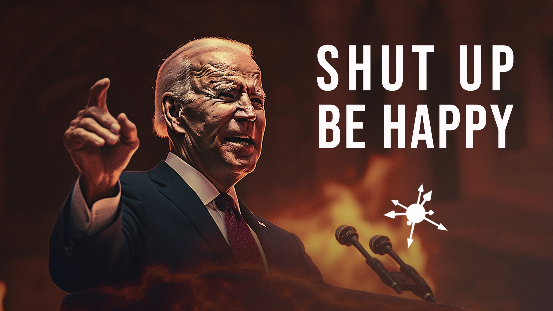 shut up be happy thumbnail Published 17 September 2023 at 1920 × 1080 in Shut Up, Be Happy Joe Biden is a dystopian president. An AI created image of a dystopian Joe Biden shouting totalitarian edicts. A video mix of Ice -T’s collaboration with Jello Biafra, “Shut Up, Be Happy”.